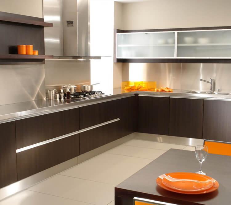 Este modelo consta de un perfil moldurado que a manera de tirador recorre todo el mueble, acentuando sus líneas y unidad. La presencia del aluminio en este manijón es exponente de la nueva tendencia en empleo de materiales, otorgándole modernidad y refinamiento.